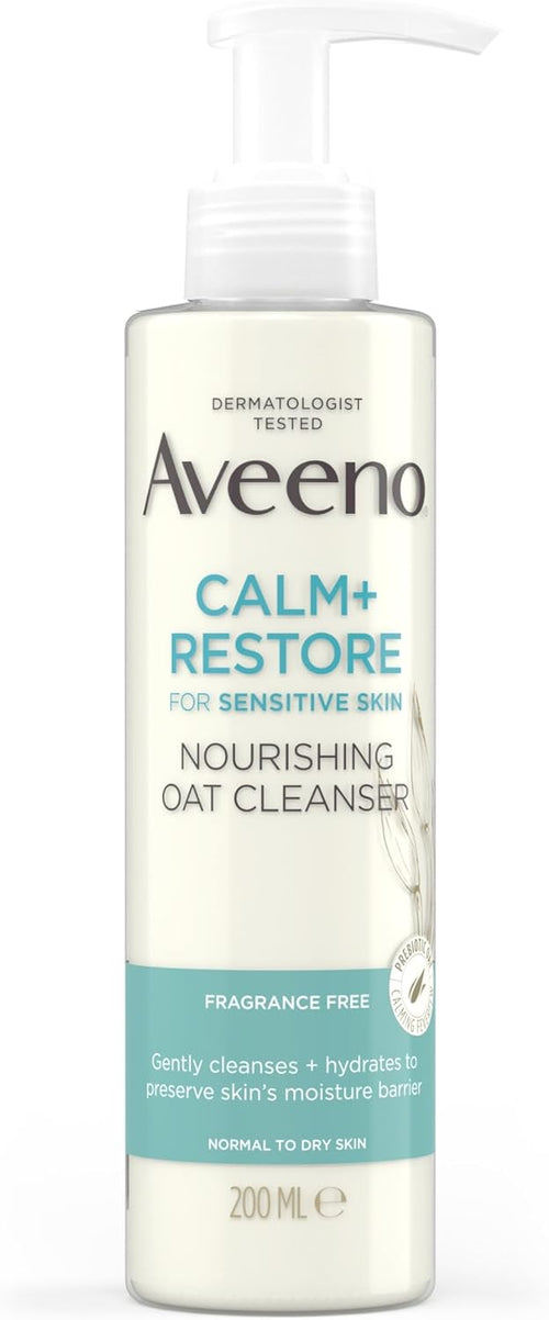 Aveeno Face Calm+Restore Nourishing Oat Cleanser (1x 200ml), Non-Foaming Face Care, Gentle Cleanser with Prebiotic Oat and Calming Feverfew, Helps Preserve Skin's Barrier