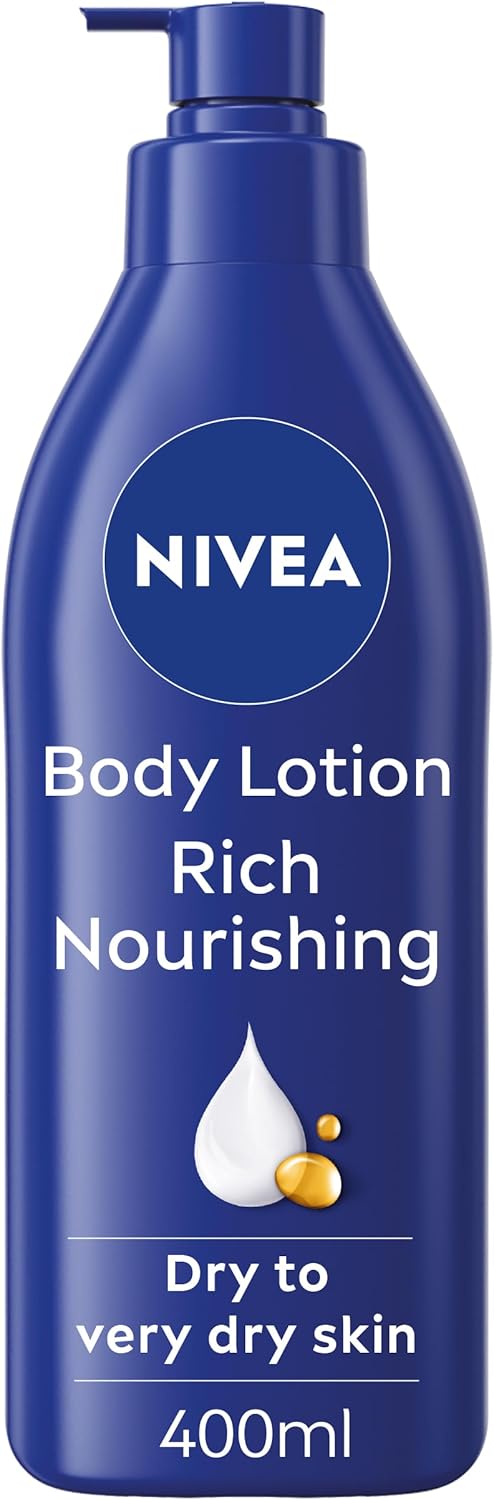 NIVEA Rich Nourishing Body Lotion (400ml), Rich 72H Hydration NIVEA Moisturiser for Dry Skin Made with Deep Moisture Serum and Almond Oil, Intensive Hydration NIVEA Body Lotion, Pack of 1